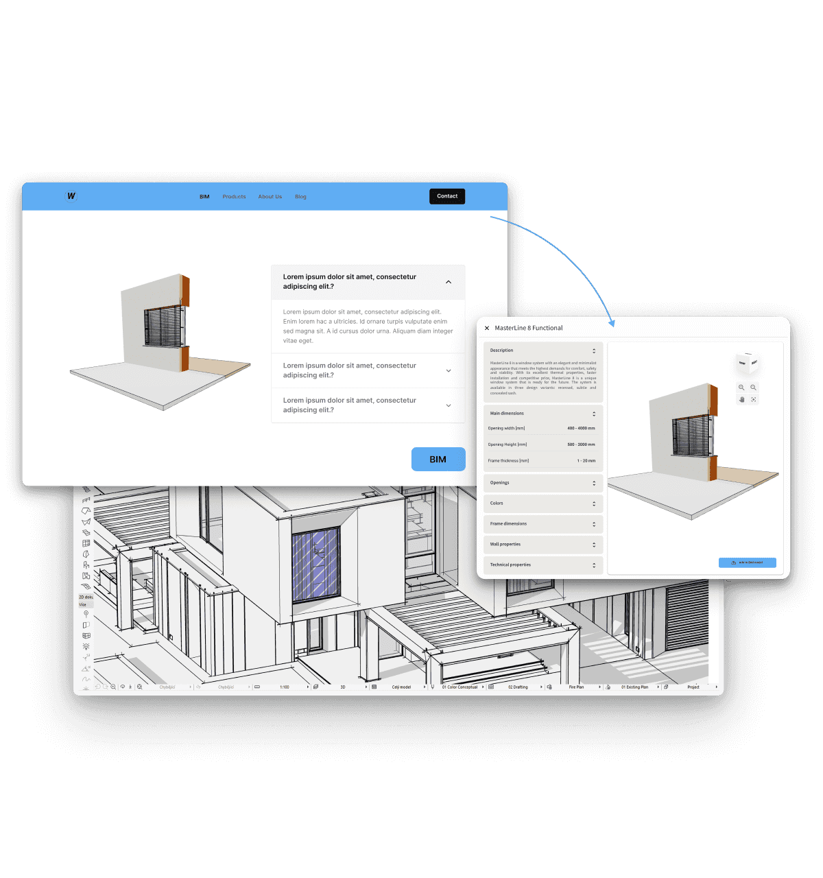 Some manufacturers have invested heavily in developing their own digital tools, and you could be one of them. In this case, we can help you link your tools directly to BIM models, which is exactly what architects and designers need. Implementation on your end is easy and we're happy to help. Implementation includes: